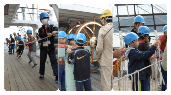 船内見学・舵輪回し・ロープの取り扱い・船員さんへの質問コーナー等